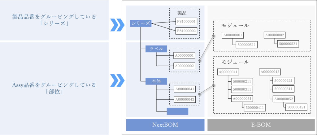 NextBOMは、「シリーズ」「部位」という2つのブロックから成り立ちます。
